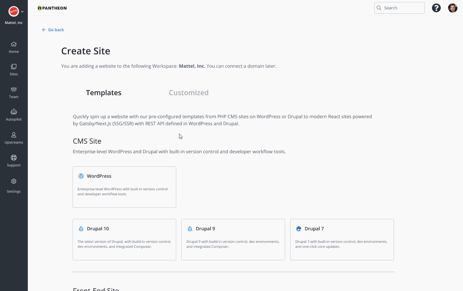Pantheon, a leading WebOps platform, has recently introduced the Front-end Site tool suite (also known as Decoupled site or Headless CMS). During the early access phase, it became apparent that the disjointed site creation workflow was hindering customers from adopting this new product. To address this issue, the site creation experience was optimized by consolidating the 25-step process across 3 separate dashboards into a streamlined 5-step process within a single wizard.